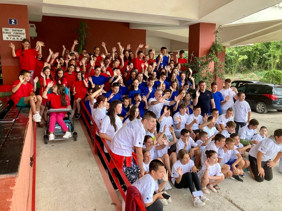 Ministar zdravlja i socijalne zaštite Republike Srpske Alen Šeranić sa saradnicima posetio je danas petu grupu dječaka i devojčica koji borave na desetodnevnom letovanju u Bečićima, u okviru projekta „Socijalizacija dece Republike Srpske - 2022“.