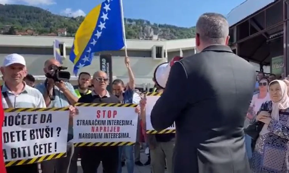 Građani su se okupili na platou Skenderije, odakle su odšetali do zgrade parlamenta, prenosi Srpskainfo.