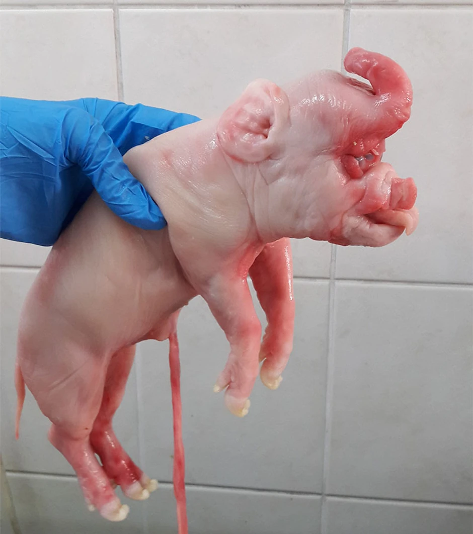 Urođene nepravilnosti u građi tela nastali su zbog genetskih faktora ili pod dejstvom štetnih faktora iz okoline, navedeno je u patološkom nalazu dvoglavog, te praseta čija glava podseća na slonovu.