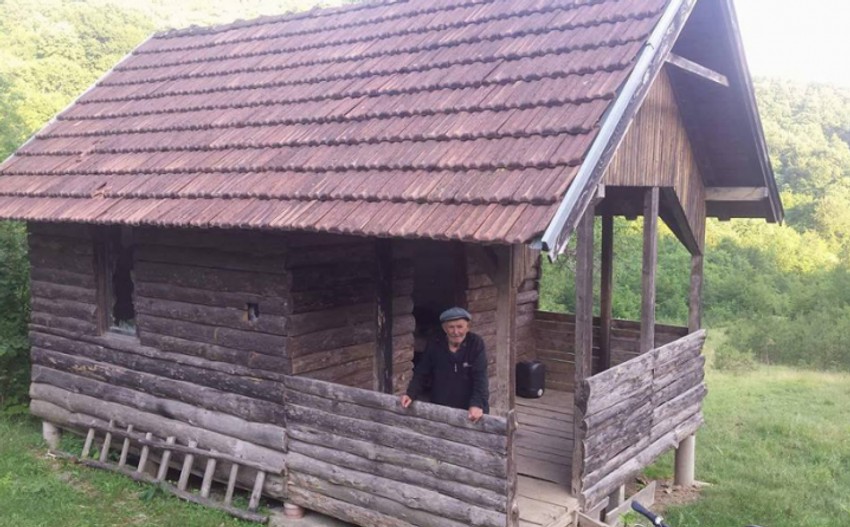 Fehim Kuduzović je starac od 89 godina i nema nikoga od porodice, a živi u napuštenoj lovačkoj kućici na ivici šume u blizini Ostrošca.