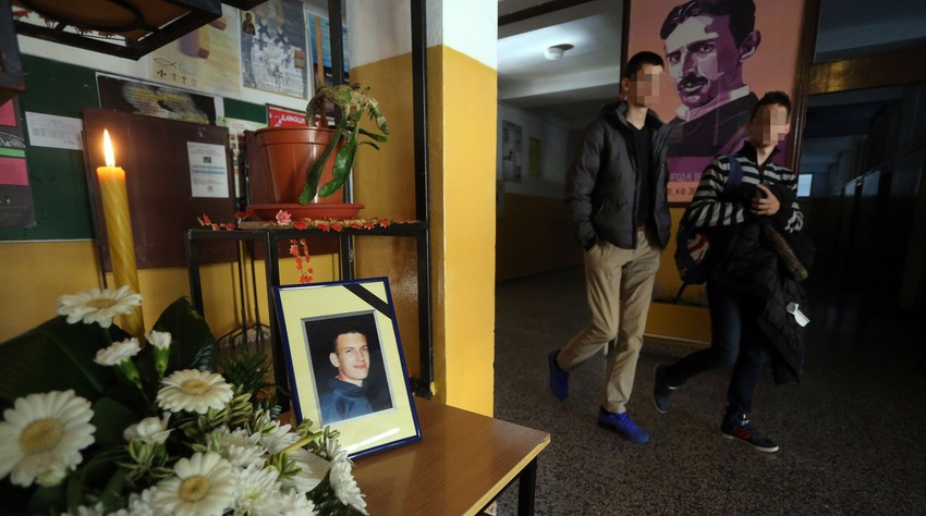 Fotografija mladića prekrivena crnom trakom i upaljena sveća u školskom holu postavljeni su u znak sećanja, a drugari iz školskih klupa ne mogu se pomiriti sa činjenicom da Božidara više nema, da nije pored njih, da se ne smeje.