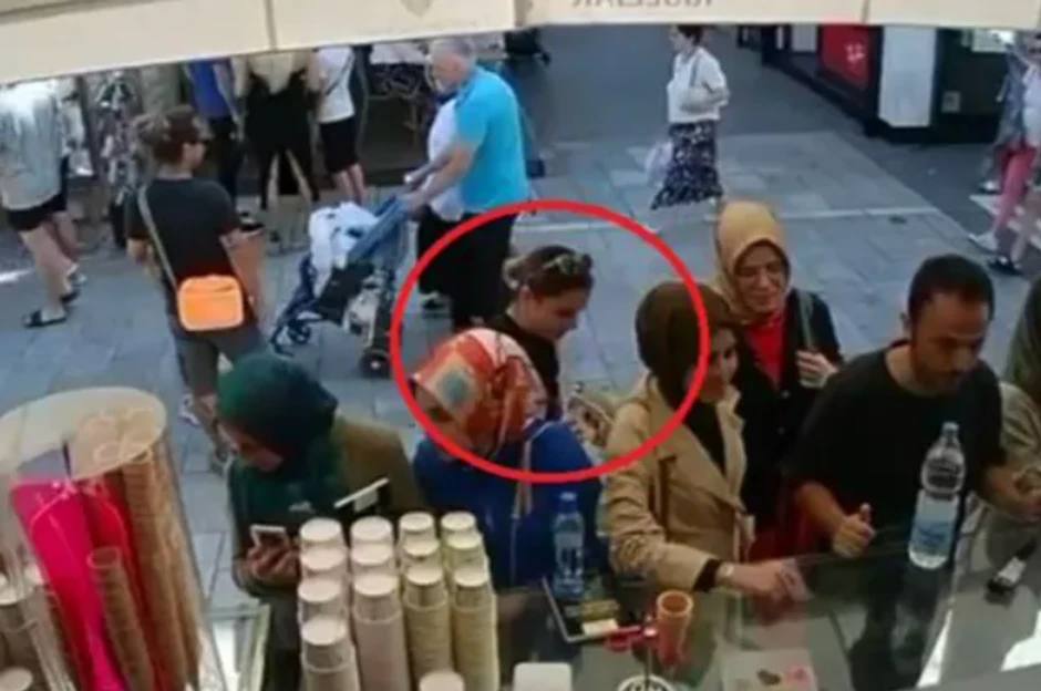Na snimku s nadzorne kamere vidi se kako je jedna žena ukrala novčanik turistkinjama koje su kupovale sladoled u slastičarnici u Ferhadiji.