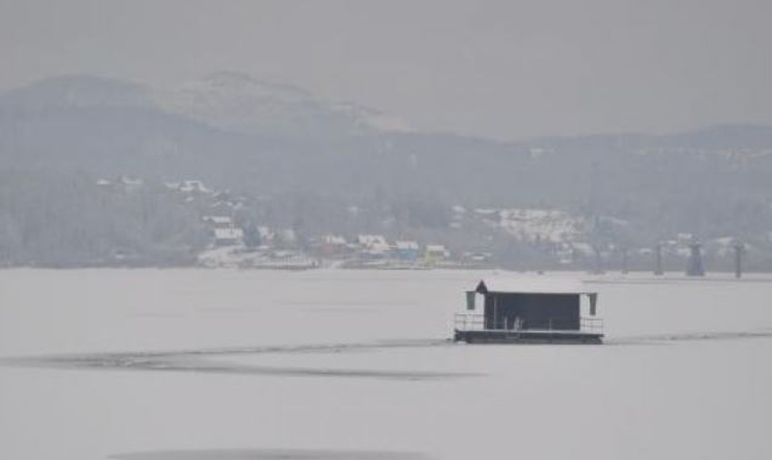 Zbog ekstremno niskih temperatura, jezero Modrac kod Lukavca je dobrim delom zaleđeno i prekriveno snegom.