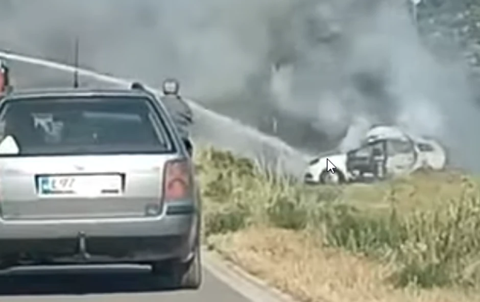 Kao što se vidi na snimku automobil se zapalio. Vatrogasci intervenišu.