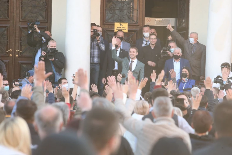 Tu ih je dočekao prvi čovek Banjaluke, a njegov izlazak je ispraćen gromoglasnim aplauzom prisutnih.