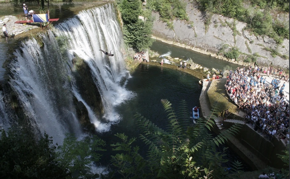Na vodopadima u Jajcu danas su održani 4. međunarodni takmičarski skokovi, a sa skakaonice sa vodopada visine 21 metar briljirao je prošlogodišnji šampion Dino Bajrić iz Sarajeva.
