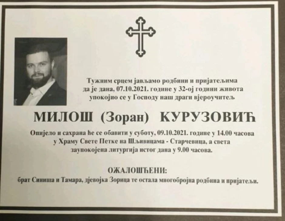 Mladi veroučitelj banjalučke Gimnazije, Miloš Kuruzović (32), danas je izgubio bitku sa korona virusom.