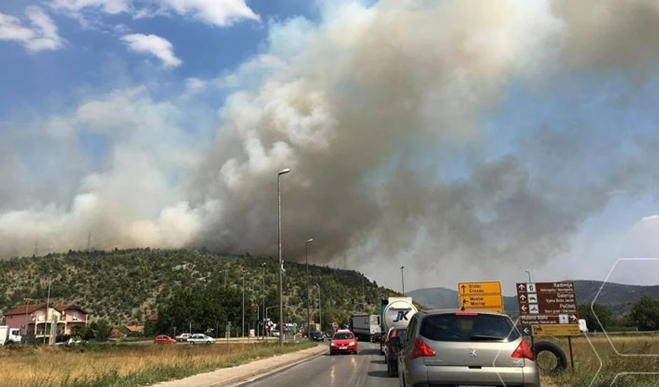 Gusti dim se širi jakim vetrom te otežava disanje i vidljivost središtu Čapljine. Uzrok požara za sada nije poznat.