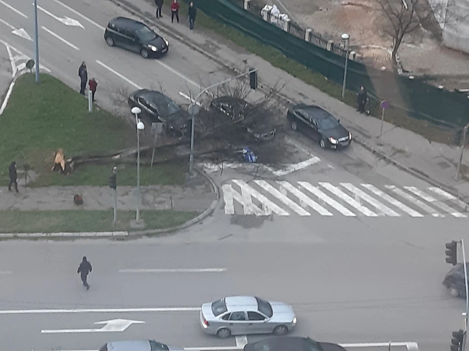 Snažan vetar oborio je stablo na automobile koji su kretali saobraćajnicom u blizini zgrade Vlade RS.
