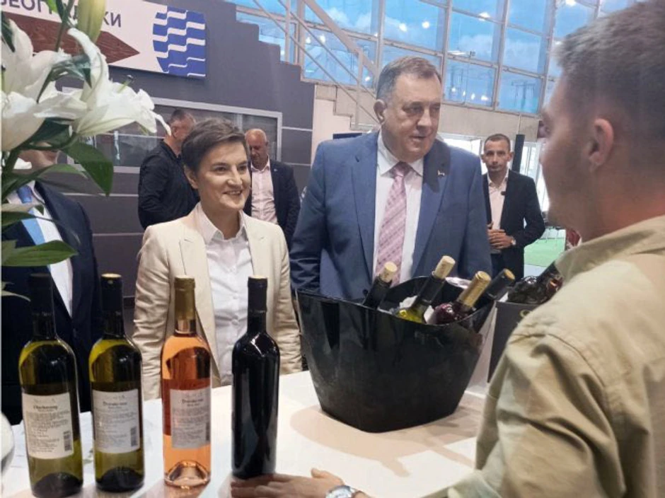Srpski član Predsedništva BiH Milorad Dodik i premijer Srbije Ana Brnabić posetili su danas štandove destilerija na Prvom međunarodnom sajmu vina "Vinska vizija Otvorenog Balkana" u Beogradu.