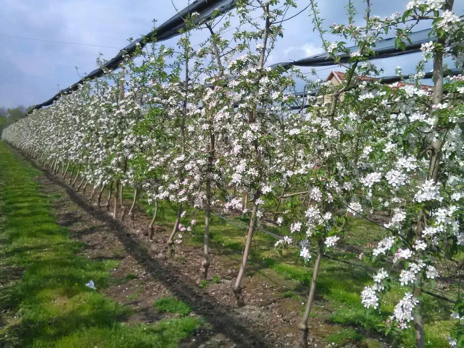 Knežević podseća da protivgradna mreža koju ima štiti voćnjak od leda, mraza, ali i ožegotina na jabuci tako što slama sunčeve zrake, te usklađuje spoljnu temperaturu i temperaturu ispod mreže. Vitomir sam orezuje voćnjak.