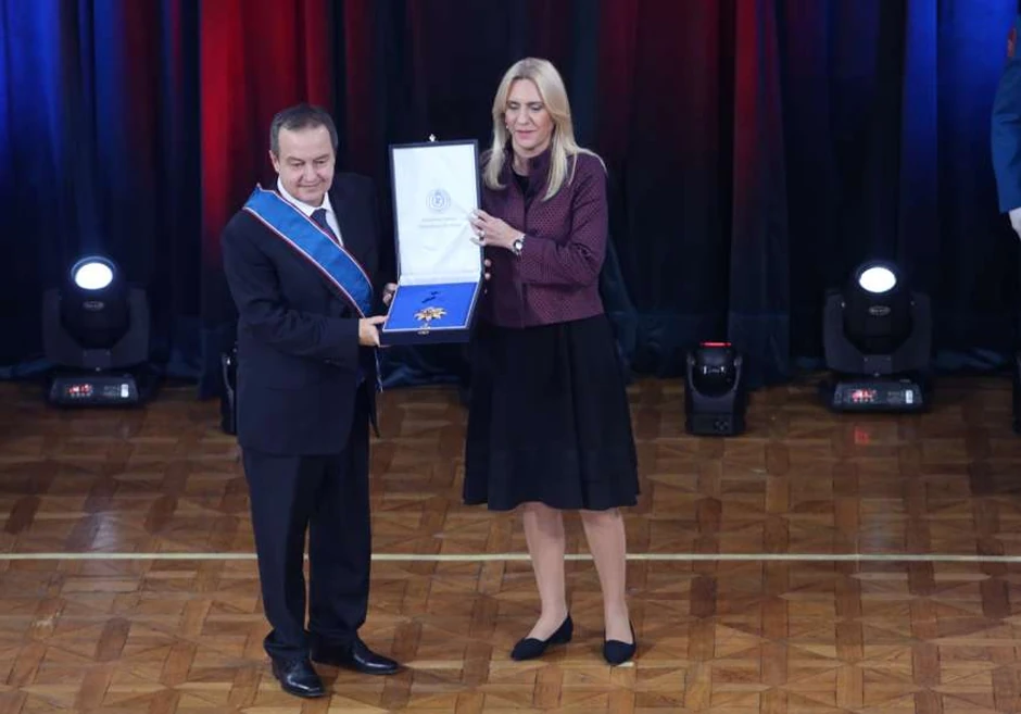 Dačić je, kako je navedeno na svečanosti u Banskom dvoru u Banjaluci, odlikovan za posebne zasluge na polju javnih delatnosti i zalsuge u stvranju i napretku Republike Srpske, piše Srpskainfo.