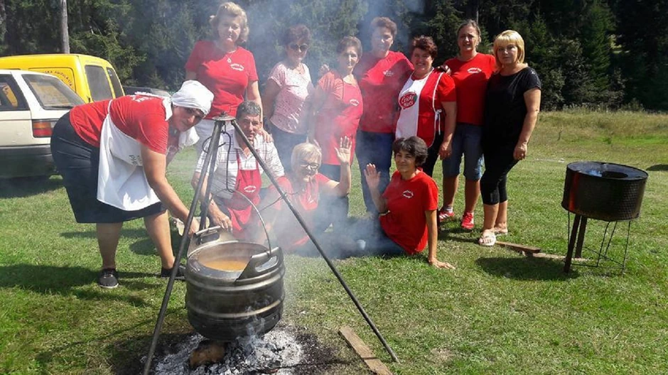 Ruža Jovičić, koja je bila zadužena da prva preseče i podeli štrudlu posetiocima “Foklorijade” koji su se borili za mesto pored njihovog štanda.