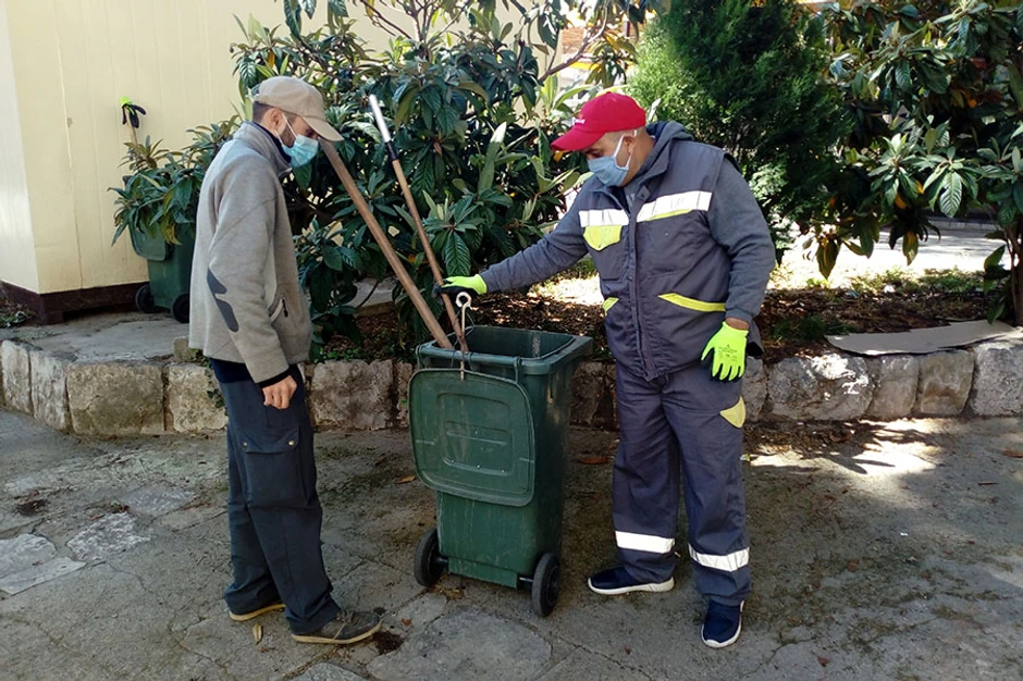 Među vrednim komunalcima koji su angažovani na čišćenju, odvozu smeća, ali i na prolećnom uređenju Trebinja, u radnom odelu, sa rukavicama i maskom na licu su i ujak i sestrić, Romi iz okoline Trebinja.
