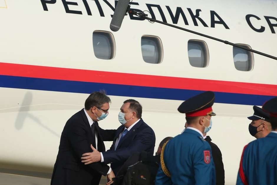 Delegacija Srbije, koju predvodi predsednik Republike Aleksandar Vučić, stigla je na Aerodrom Banjaluka.