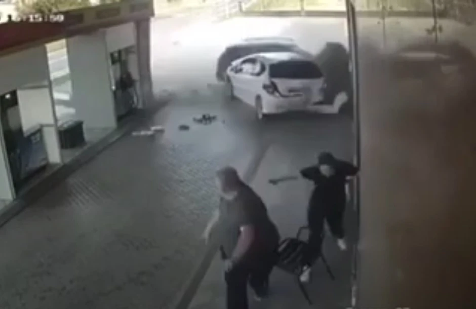 Kako se može videti na objavljenom videu vozač crnog vozila je prilikom skretanja na benzinsku pumpu prvo udario jedan automobil, da bi potom direktno udario parkirani "pežo".