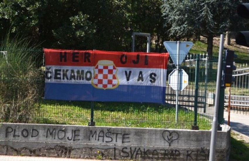 Na ogradi mostarske Biskupije danas je istaknut transparent u obliku zastave bivše Hrvatske Republike Herceg-Bosne na kojem je ispisana poruka “Heroji, čekamo vas”.