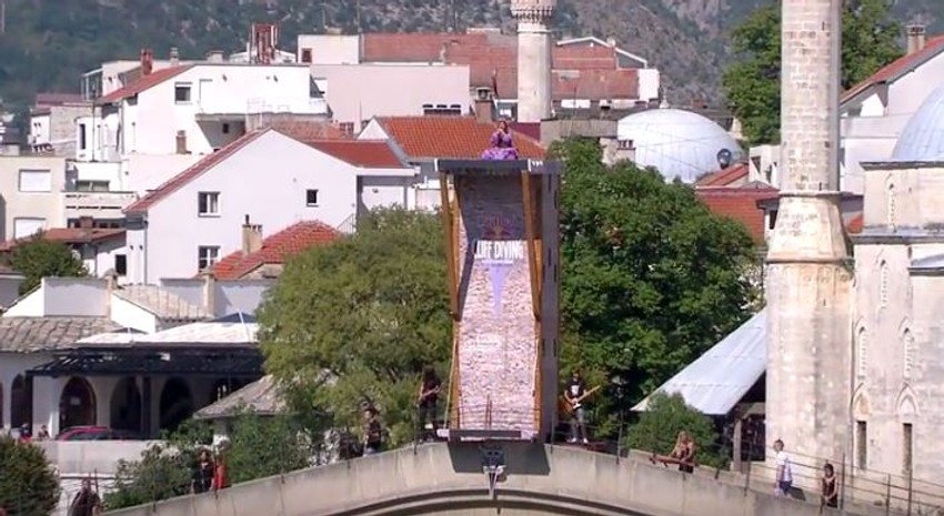 Na 28 metara visokoj platformi, mostarska pevačica izvela je "Eminu" pred hiljadama gledalaca ispod Starog mosta zbog čega je bila nagrađena velikim aplauzom.