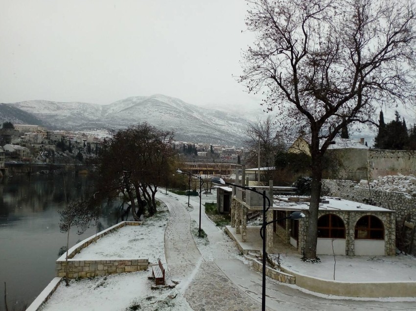 Naime, u Trebinju od sinoć pada sneg koji je formirao snežni pokrivač od nekoliko centimetara, a izmerena temperatura je -5 stepeni.