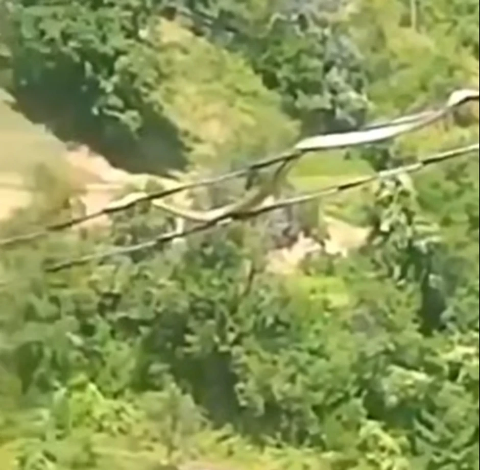 Neobična scena snimljena je u Bosni i Hercegovini u selu Komrani, gde je ogromna zmija gmizala i uvijala se po kablovima dalekovoda.