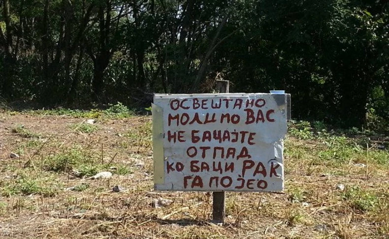“Osveštano. Molimo vas ne bacajte otpad, ko baci rak ga pojeo!”, piše na tabli postavljenoj na parceli u selu Đurđevac kod Mionice.