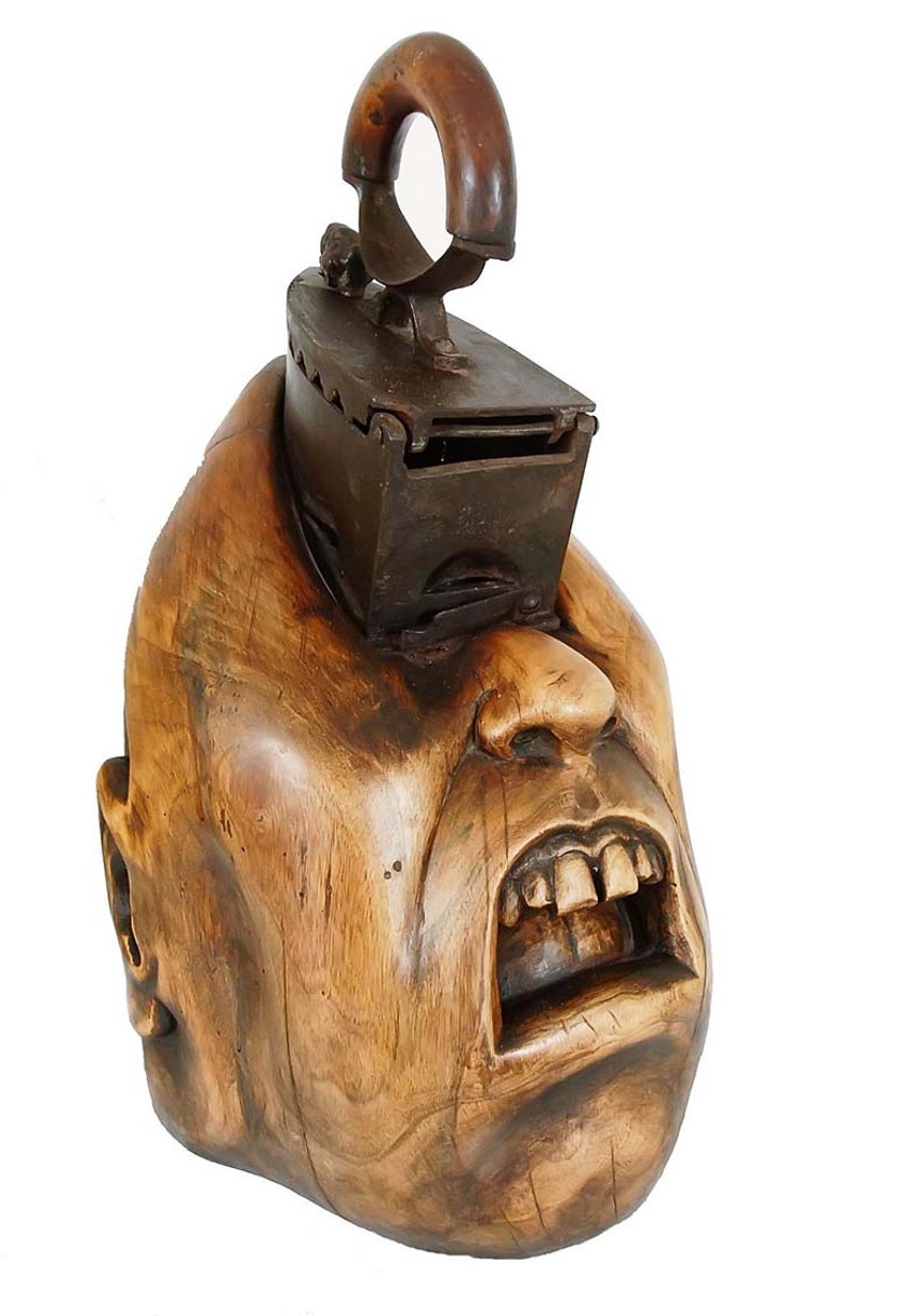 Na jubilarnoj izložbi prikazao je skulpturu u drvetu nazvanu "Upakovan". Dve glave spojene jedna uz drugu. Prvoj su oči prekrivene, ništa ne vidi, ali ona crče od smeha. Drugoj su oči otvorene, na njima se vidi gorčina, srdžba, ali su joj usta začepljena.