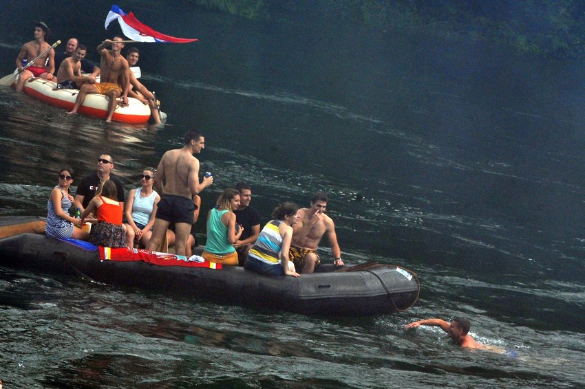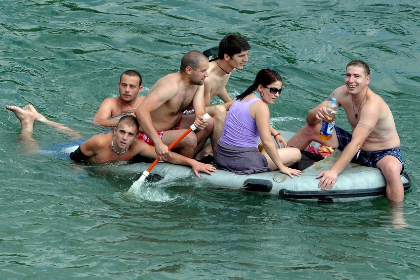 - Slušao sam priče i priznajem da nisam baš u sve verovao. Ali ovo što sam video je neverovatno. Toliki broj ljudi na vodi, na svakom čamcu potpaljeni roštilji, svi u ludom raspoloženju, bez ijednog incidenta, neverovatno. Da nisam sve slikao ne bi mi u Nemačkoj niko verovao. Ali kad ovo tamo vide dogodine će sigurno poželeti da u ovoj atrakciji i sami učestvuju-kaže Banjac. U veselom raspoloženju vreme brzo prolazi. Posle četiri sata plovidbe najveći karneval na vodi stiže na cilj u Rogačicu. Sledi povratak kući, kratak predah, a onda ponovo MOST fest. Na koncerte Riblje čorbe, Zemlje gruva, Ateist repa.