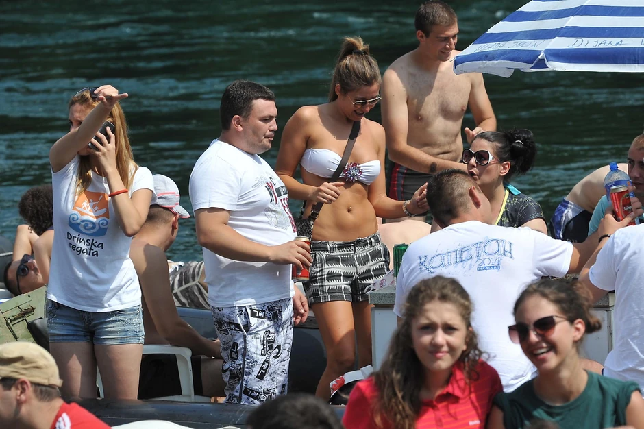 BAJINA BAŠTA- Tačno u 11 časova juče Drina je proključala. Startovala je 21-va Drinska regata. U više od 1200 plovila, predvođenih autentičnim drinskim splavovima, na plovidbu od Perućca do 26 kilometara udaljene Rogačice krenulo je preko 15 hiljada ljudi. Među njima i Rusi, Slovaci, Slovenci, Nemci, čak i jedan Južnoafrikanac.