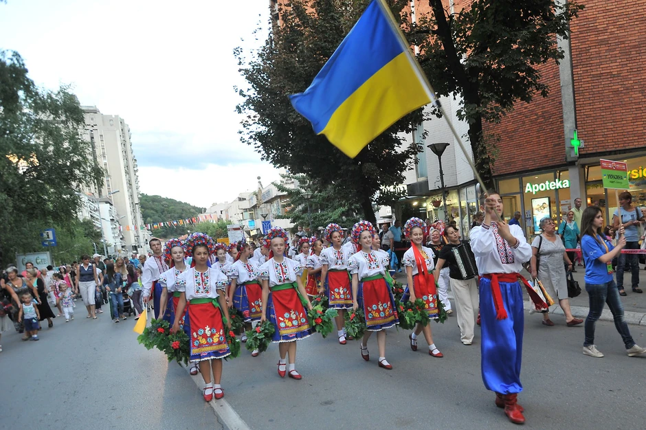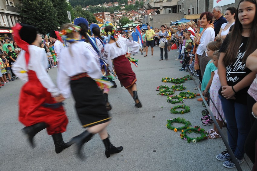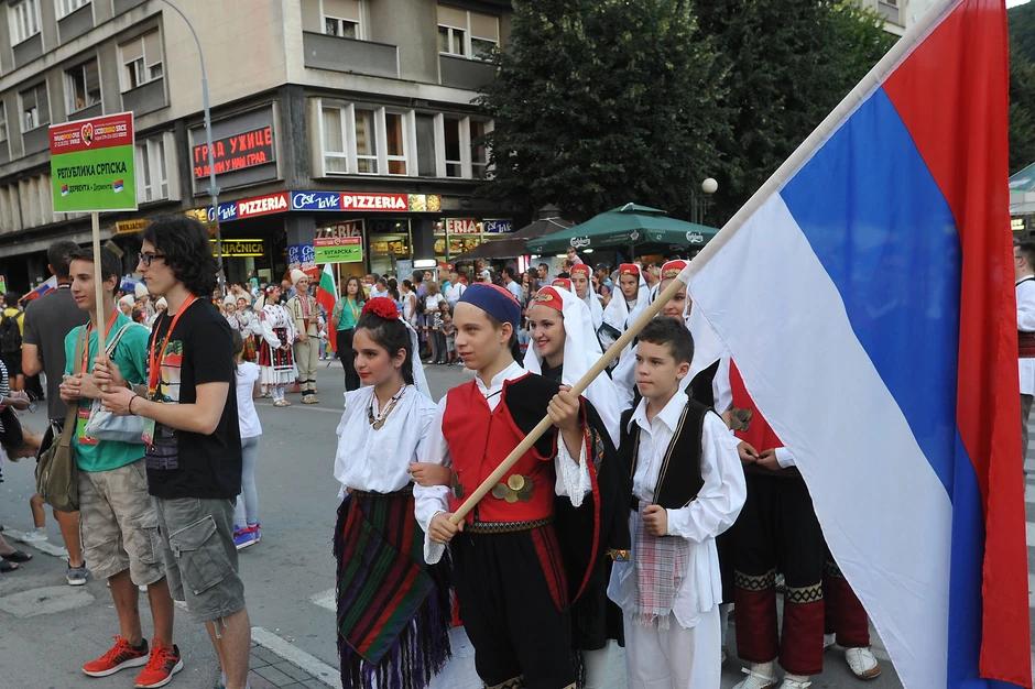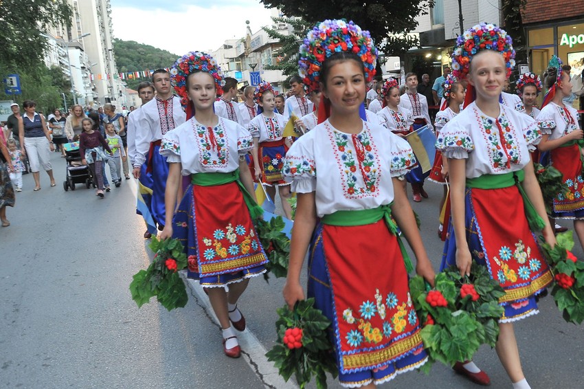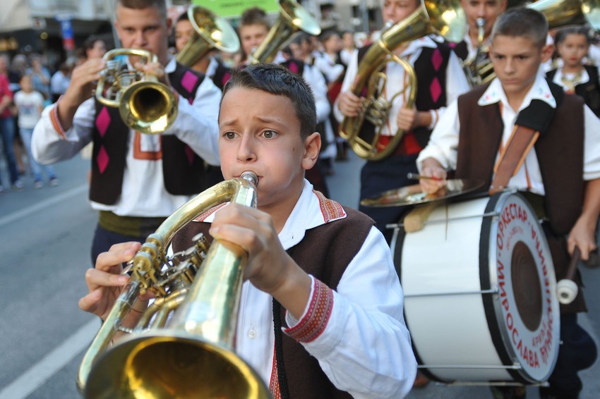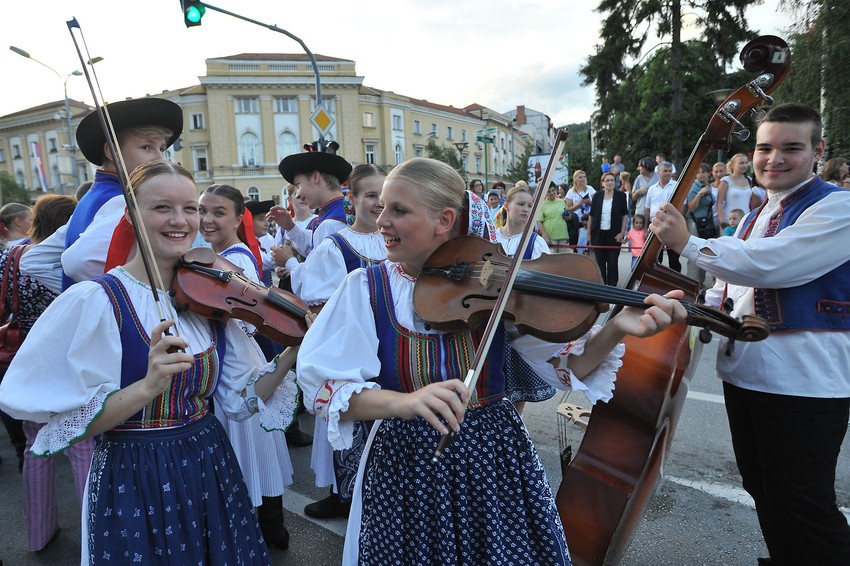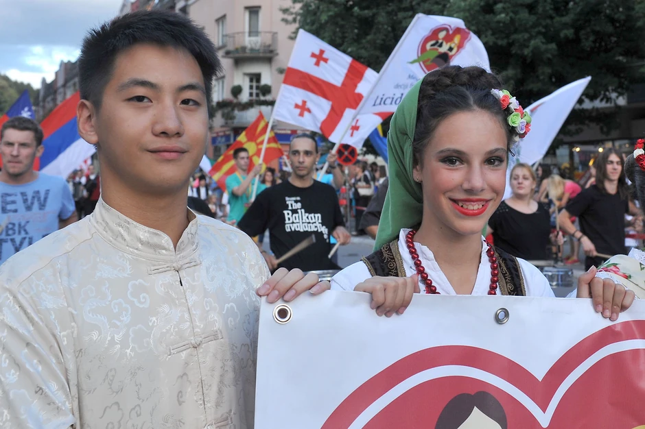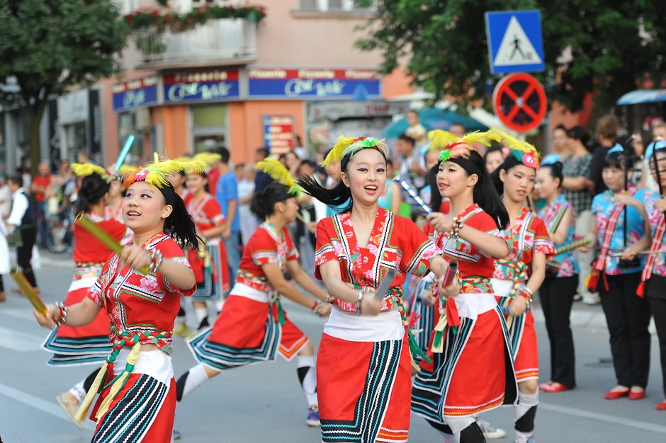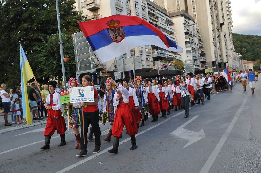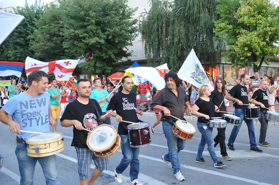 Centrom grada u narodnim nošnjama prošetalo je oko 850 mališana iz Bugarske, Slovačke, Gruzije, Makedonije, Tajvana, Ukrajine, Italije, Republike Srpske i Srbije, na čelu sa dobošarima Dragoljuba Đuričića. Potom se razgradana, šarena kolona preselila na Trg partizana.