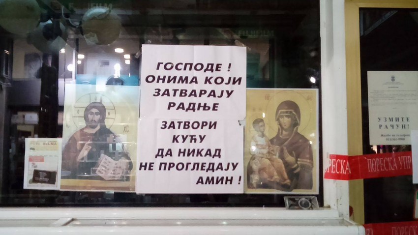 - Gospode! Onima koji zatvaraju radnje zatvori kuću da nikad ne progledaju. Amin! - zalepljeno je kao "odgovor" inspektorima na izlogu.