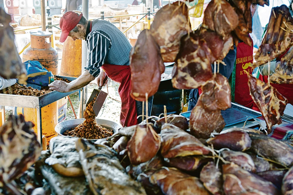 Doduše, stvar je malo manje spiritualna nego u njihovoj otadžbini. Ovde se radi o konkretnim gudama koje su prethodno poslate u večna lovišta, potom istranžirane, usoljene, odležale svoje u salamuri, onda obešene u pušnicama širom Srbije da im vatra i vazduh ispiju i poslednji ostatak njihove svinjske duše, bog da im je prosti. (Izvinjavam se ljubiteljima životinja, ali prokletstvo novinarskog posla podrazumeva i opise ovakvih pokolja i stratišta.)