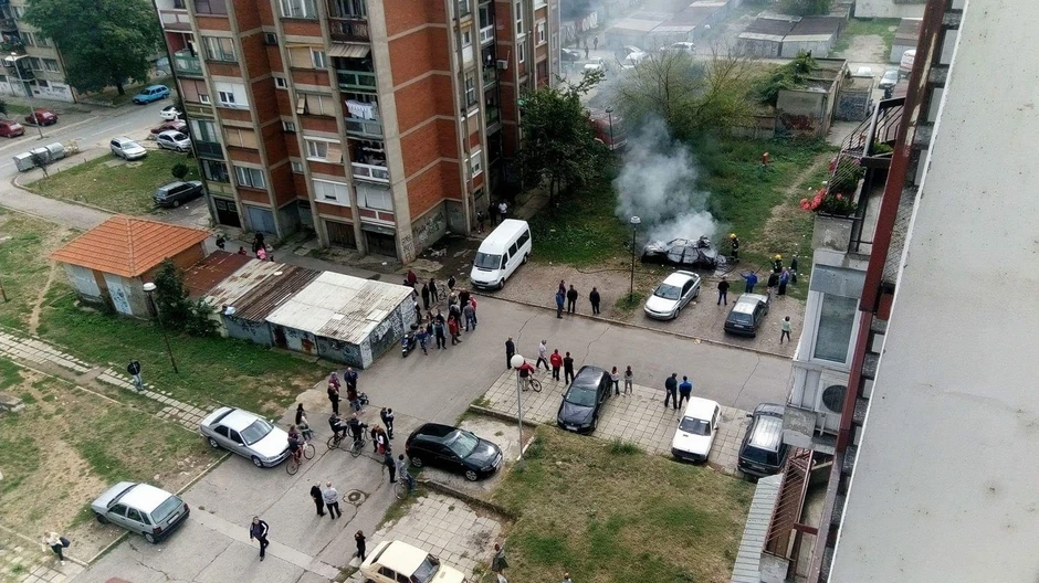 Na parkingu između zgrada u Ustaničkoj ulici u naselju Centrala u Pirotu danas oko 13 sati i 30 minuta izgorela je olupina automobila.