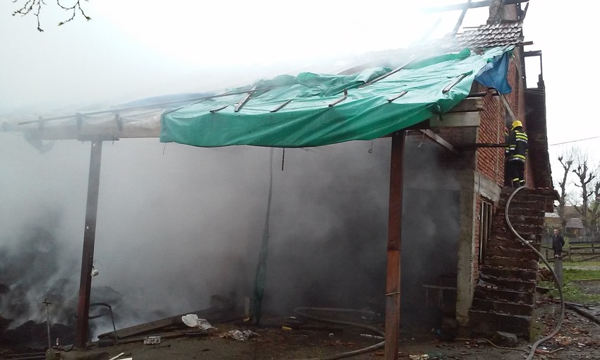 U požaru koji je danas popodne izbio na imanju Milomira Filipovića u Tavniku, izgorelo je četiri junadi, krmača, dvanaest prasića i i dvadesetak pilića.