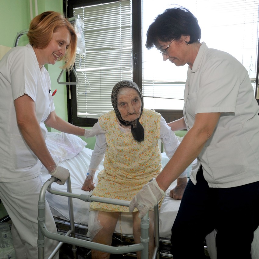 Ništa neobično za neupućenog koji ne zna da je ovoj ženi, rođenoj daleke 1916. godine, u utorak operisano polomljeno koleno. A već u četvrtak počela je da se oslanja na noge i hoda uz pomoć pomagala.
