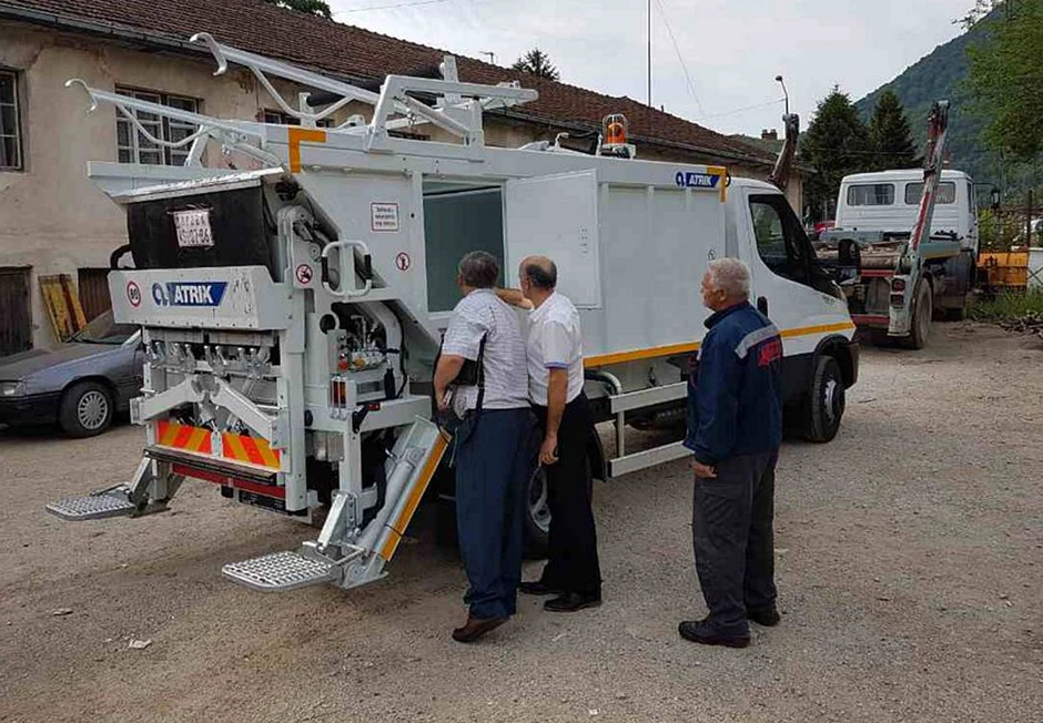 Kamion marke "Iveko", manjih dimenzija, pogodan je za prikupljanje smeća u uskim gradskim ulicama, dok su kontejneri zapremine 1,1 metar kubni.