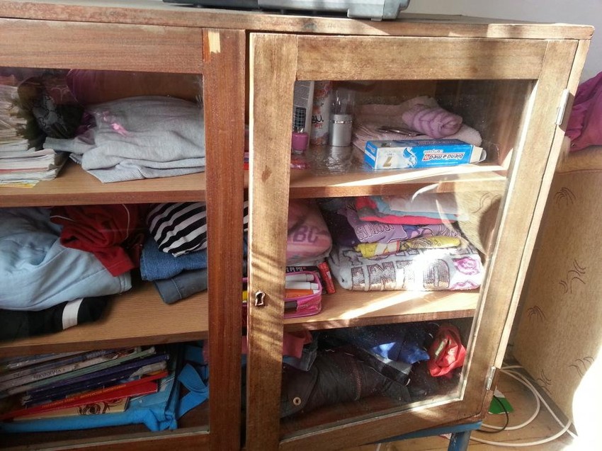 Kauč, vitrinica za garderobu, sto sa stolicom, televizor i peć na drva – upotpunjuju enterijer u kojem Jelena provodi svoje detinstvo.