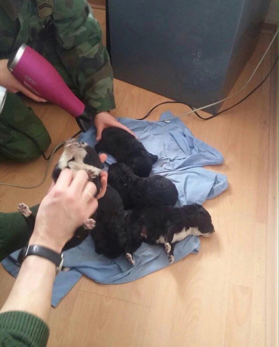 - Primetili smo par dana pre Nove godine da kuja nosi mladunčad, ali nismo znali kada i gde se okotila, sve dok juče nije došla. Čim je malo otoplilo pojavila se ispred kasarne. Ponela je jedno štene i stavila ga na klupu pored ulaznih vrata naše baze. Čuli smo je kako cvili, plakala je kao čovek, a mladunče koje je donela delovalo je beživotno – započinje Vladimir priču.