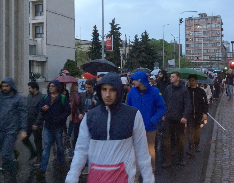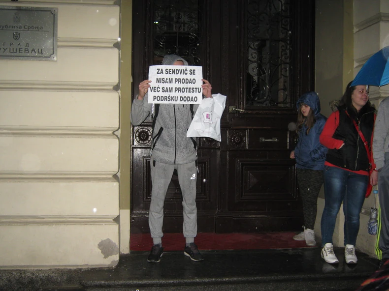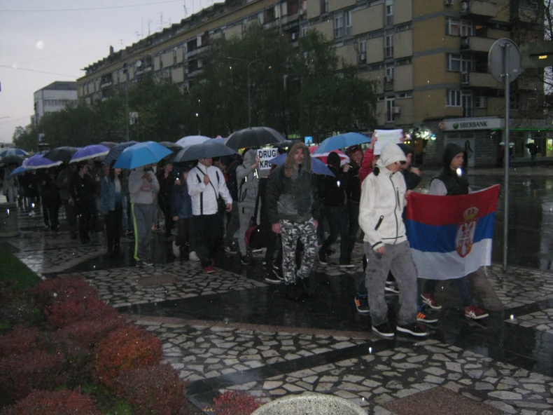 Jaka kiša nije sprečila oko stotinak Kruševljana da se i večeras okupe ispred zgrade Gradske uprave i "protestuju protiv diktature". Među okupljenima je najviše bilo mladih, studenata i srednjoškolaca.