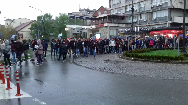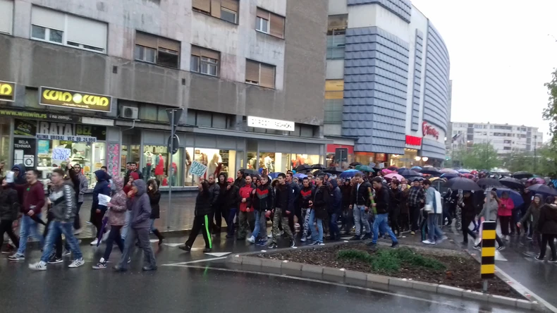 Nakon 15 minuta, noseći zastavu Srbije, i uz povike "Dole diktatura", okupljeni su krenuli u šetnju glavnom gradskom ulicom, do trga Fontana i nazad.