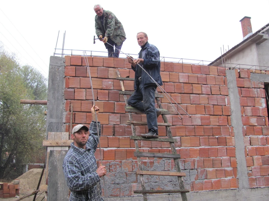 Svako od meštana je ponešto priložio i za mesec dana nikli su zidovi kuće od osamdesetak kvadrata. Juče su seljani spremali armaturu za ploču.
