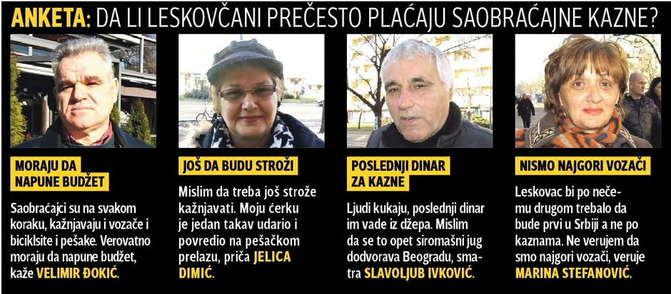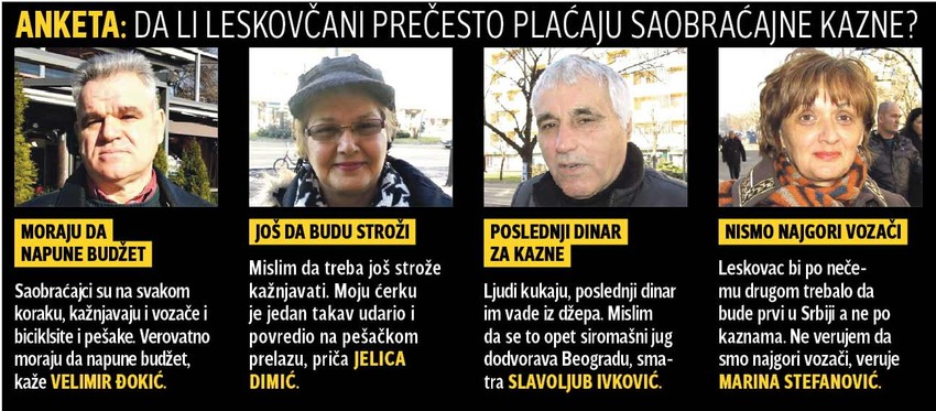 Svaki drugi vozač u leskovačkom kraju platio je prošle godine saobraćajnu kaznu, pa se procenjuje da su napunili budžet sa 100 miliona dinara, po čemu su rekorderi u Srbiji.