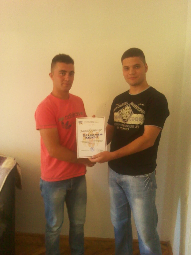 - Vladimir je dokaz da za nas ima nade, da je naša budućnost u mladosti. Zahvalnicom smo želeli da mu odamo priznanje, ali i da podsetimo sve da su mladi spremni da se uhvate u koštac sa nevoljama i preuzmu odgovornost - rekao je Nikola Nikolić, predsednik Udruženja LJON, čiji su volonteri bili najaktivniji u otklanjanju posledica poplave.