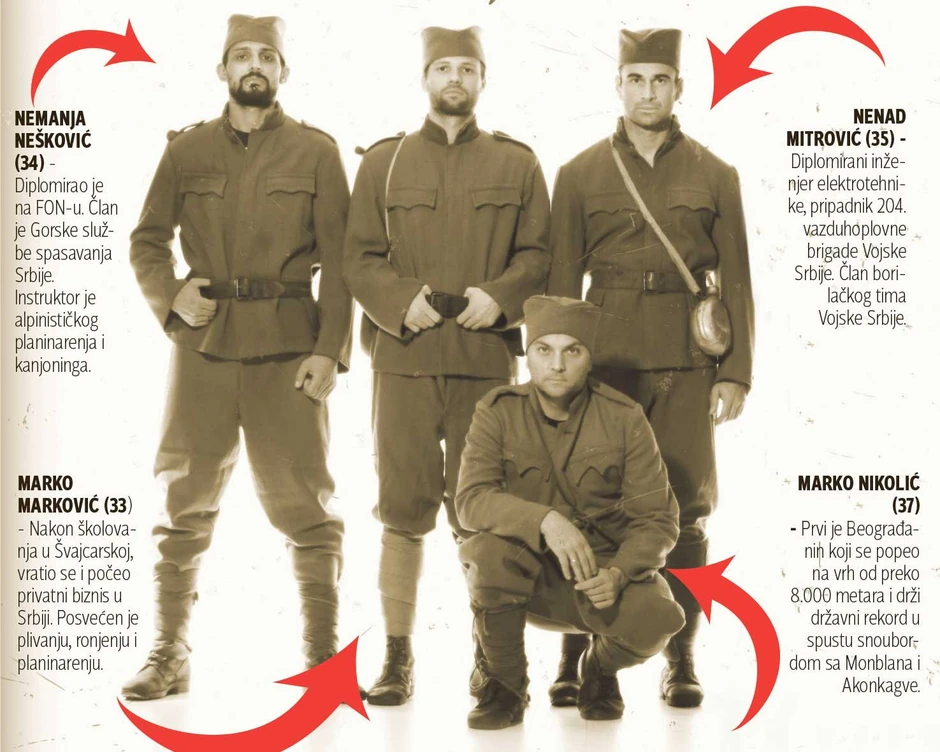 Marko Nikolić, Marko Marković, Nenad Mitrović i Nemanja Nešković učesnici su ekspedicije „Albanska golgota 100 godina kasnije”. To je njihov način da, vek nakon povlačenja Srpske vojske u Prvom svetskom ratu, obeleže stradanje predaka i odaju poštu žrtvama.