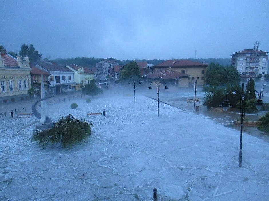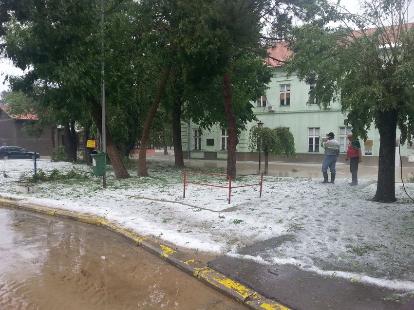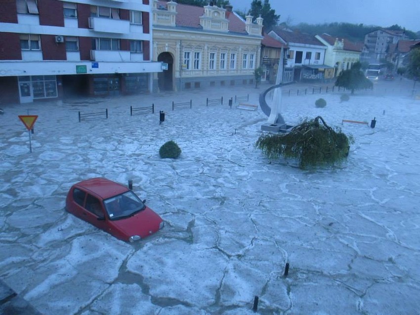 Nevreme koje je trajalo 40 minuta ostavilo je sve pod vodom, a grad koji je padao lomio je i prozore i izloge na radnjama. Poplavljeni centar grada blokirao je saobraćaj.