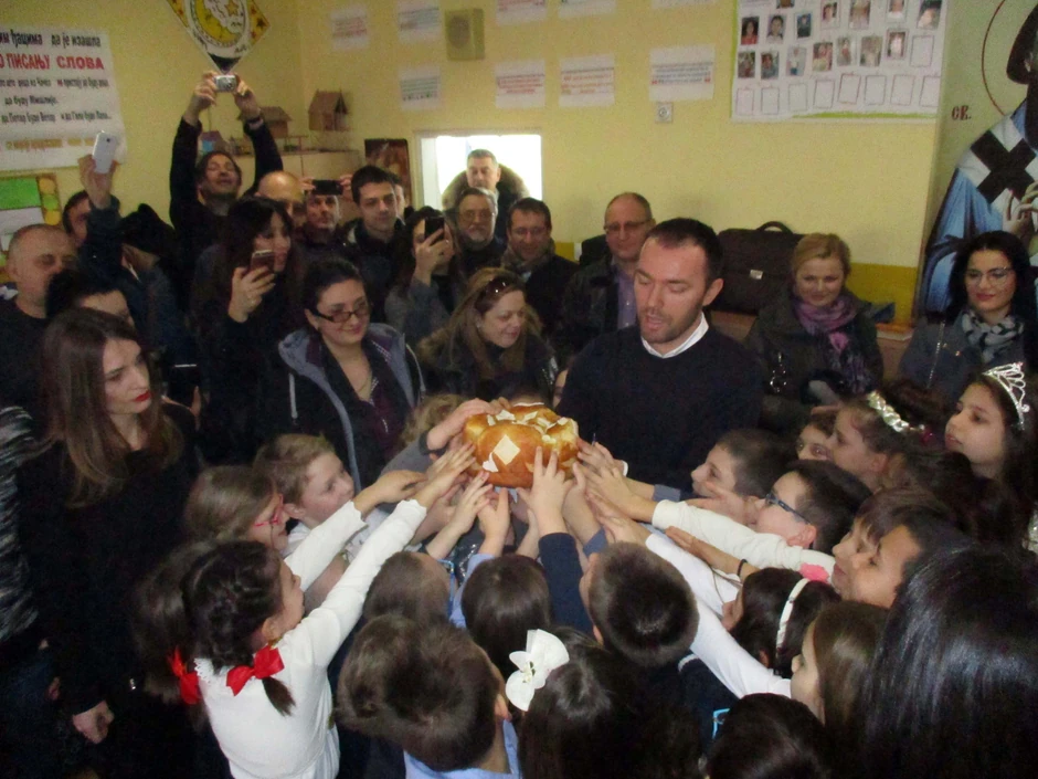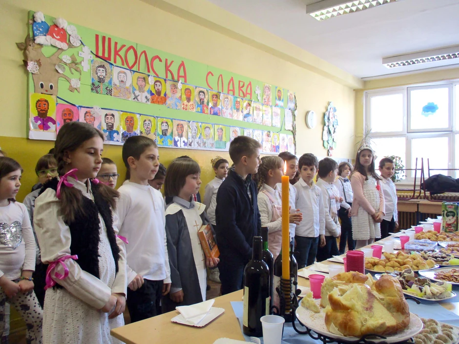 Pošto su presekli slavski kolač sa veroučiteljem, lepi i doterani za školski praznik, učenici su su uglas otpevali himnu Svetom Savi, a potom izveli i prigodu priredbu sa recitujući stihove posvećene prvom srpskom prosvetitelju.