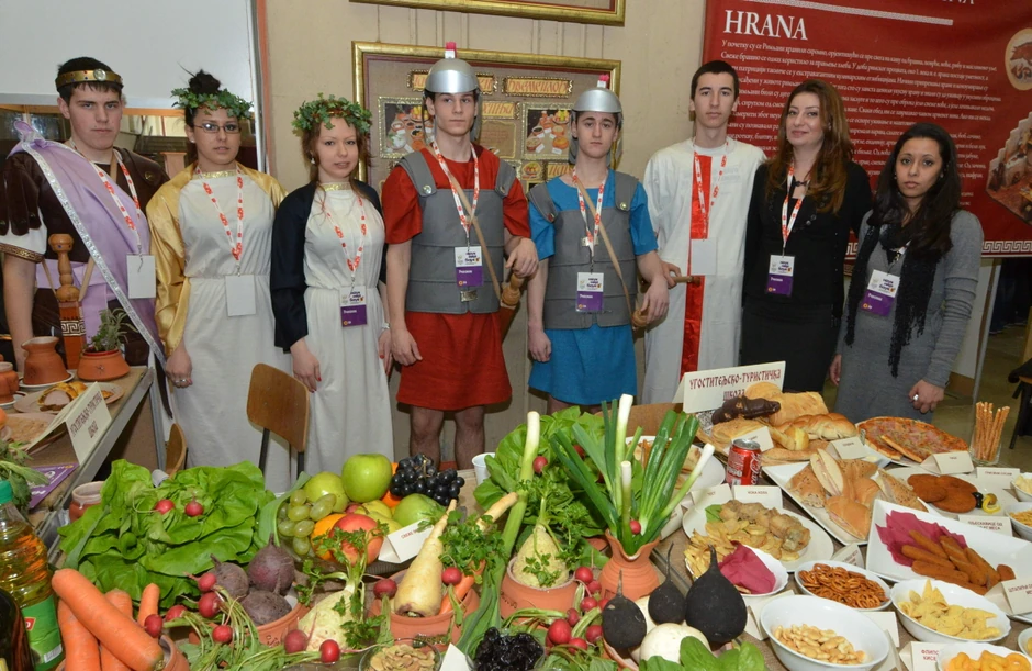 - Želimo da prikažemo zdravu kuhinju iz doba cara Konstantina, jer je ishrana zaista bila zdrava. Pripremanje obroka nije teško, tako da svako ko želi hranu može spremati kod kuće. U to doba jeo se isključivo raženi hleb, suvo i sveže voće, masline, sočivo, gulaš od divljači, a pilo se crveno vino. Sve obroke koje smo spremili timski smo odradili i mogu da kažem da ništa nije komplikovano - kaže učenica trećeg razreda Milica Živković.