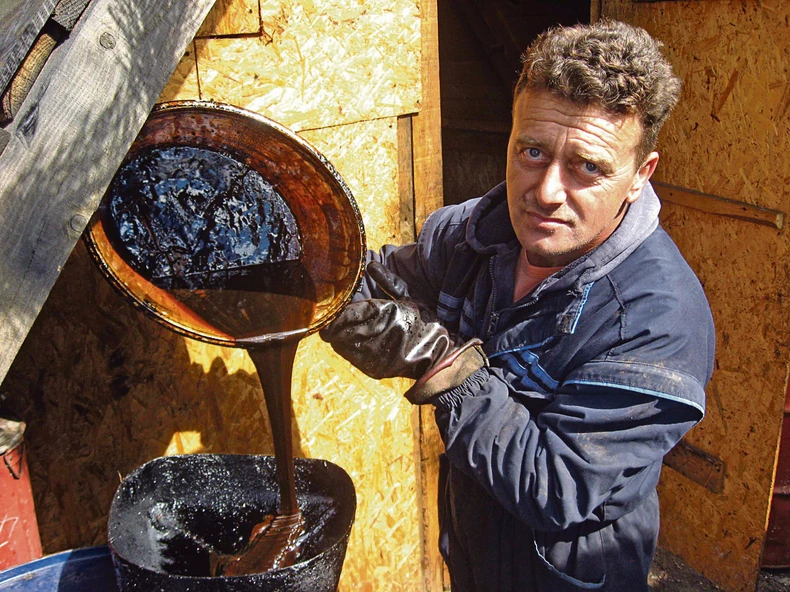 Katran se pravi destilacijom borovih panjeva. Priča Radovan da od njegove, pa do Moldavije, više nema nijedna katrana. Hrani troje dece, suprugu, zanemoćalog oca...