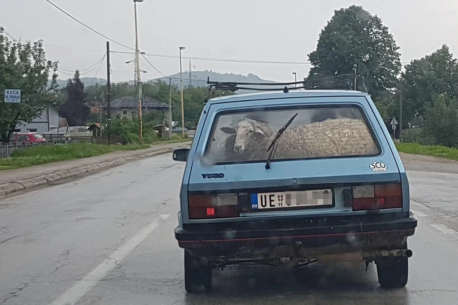 Na izlasku iz Arilja uslikano je malo starije jagnje - dviska kako se vozi u gepeku automobila. Teško je verovati da je životinja pošla na šišanje, jer za skidanje runa je još rano, ili da je izgubila stado pa ju je gazda počastio privilegijom da je na četiri dočka doveze kući.