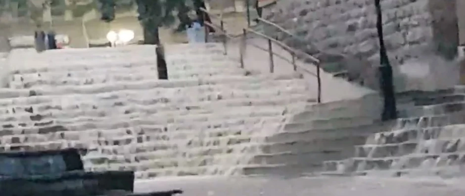 Dok je voda, koju su naneli potoci iz viših delova opštine, tekla gradom jedan Bajinobaštanin snimio je stepenište na Trgu Dušana Jerkovića kojim se slivala bujica, i na kom se stvarala slika malog kaskadnog vodopada.