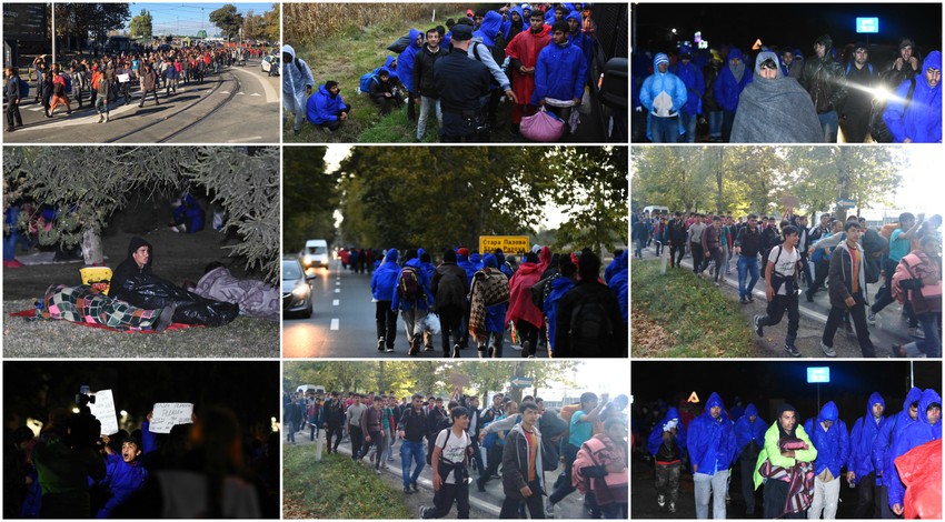 Grupa od oko 200 migranta krenula je u 9 sati juče ujutru od Autobuske stanice u Beogradu peške do mađarske granice. Migranti su hodali tokom celog jučerašnjeg dana i posle ponoći stigli u Inđiju gde su prespavali i gde se i sada nalaze. Veći deo migranata odustao je od protesta kada su stigli do Stare Pazove zbog, kako su rekli, umora i kiše. Svega oko migranata želi da nastavi put dalje, ali traže da im se obezbedi prevoz do Subotice. Protestnu šetnju migranata tokom celog jučerašnjeg dana pratio je veliki broj medija, kako iz zemlje, tako i iz Hrvatske, kao i veliki broj policajaca, volontera i nekoliko doktora koji brinu o njihovom zdravstvenom stanju.